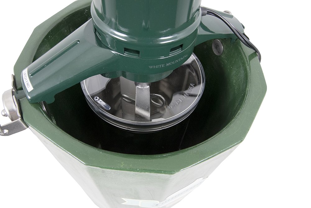 The Immergood 6 qt electric is equipped with the improved green White Mountain electric motor. Since White Mountain introduced this new motor customer satisfaction has been high.